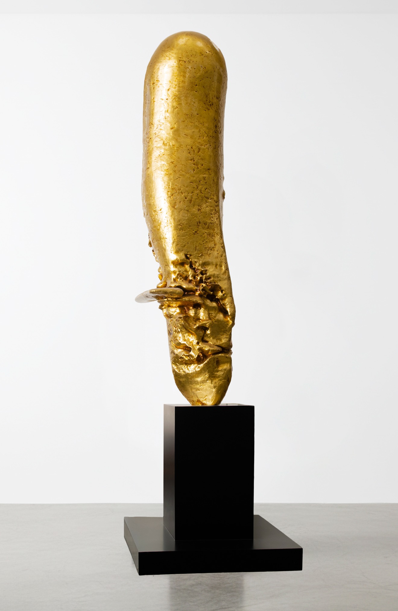 Самородок - это природная форма, осмысленная как произведение искусства. Его антропоморфные очертания, напоминающие архаичную маску или идола, отсылают к древним культовым образам. Через фактуру и пропорции драгоценного металла автор предлагает ощутить вневременную историю земных недр, подчеркивая абсолютную красоту творений природы.