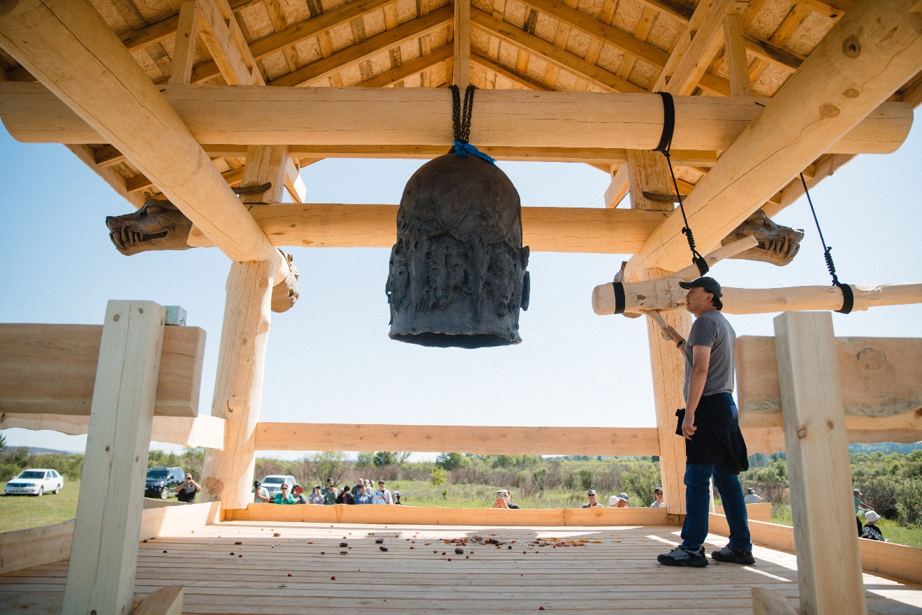 В парке также появился новый и крайне важный объект - большой колокол «Хан дарханай хонхо», который был освящен шаманом, по словам которого, бить в него положено только мужчинам. Звук колокола, глубокий и сильный, звучал мистически волшебно.